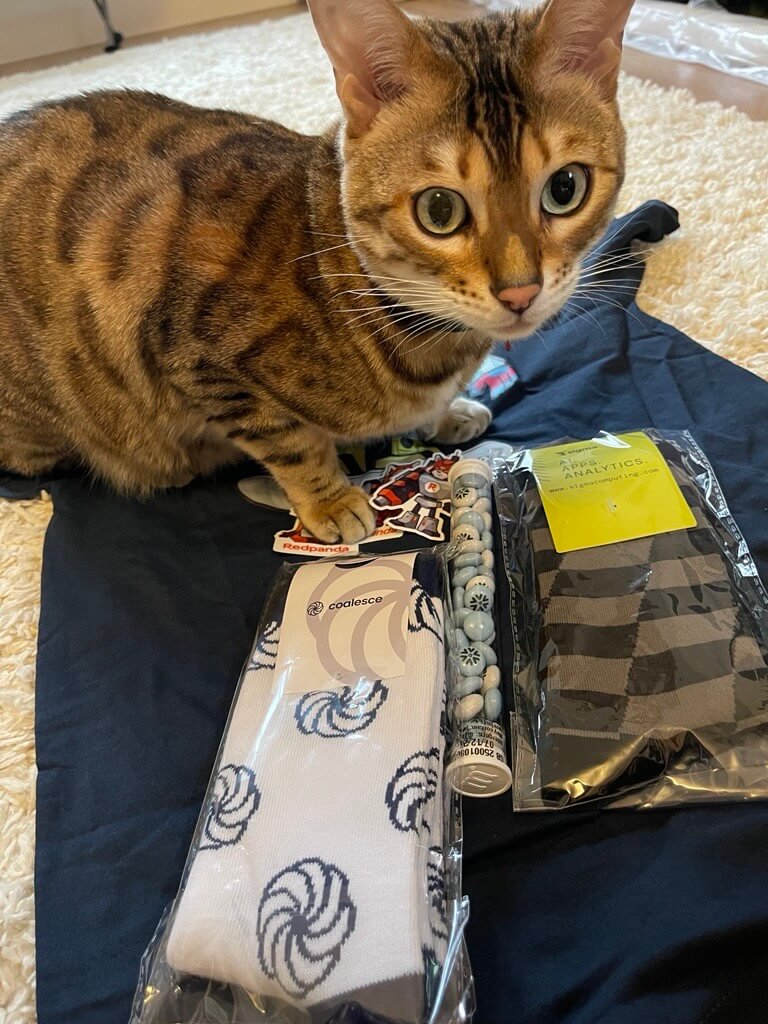 If you read through the whole article, here's our cat sitting on top of the merch and investigating which I gathered from the snowflake world tour London 2025, thanks for all the socks and T-shirt, and a very generous gilet from one of our partner โ Thoughtspot (which is not in this photo but it's absolutely the coolest merch)!